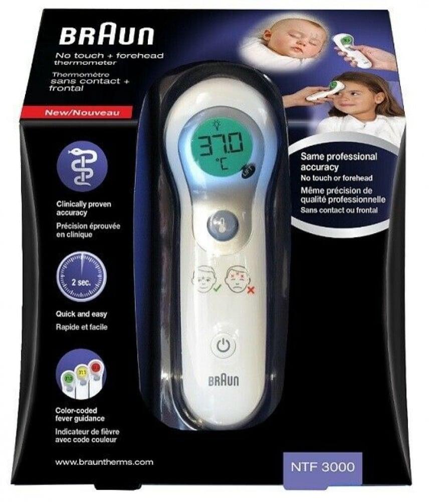 مقياس حرارة الجبين من براون سريع وسهل الاستخدام بلمسة جبينية لطيفة ترمومتر وضع بدون اللم سوضع بدون اللمس : تأخذ ميزة عدم اللمس القراءات من مسافة تصل إلى 5 سم.